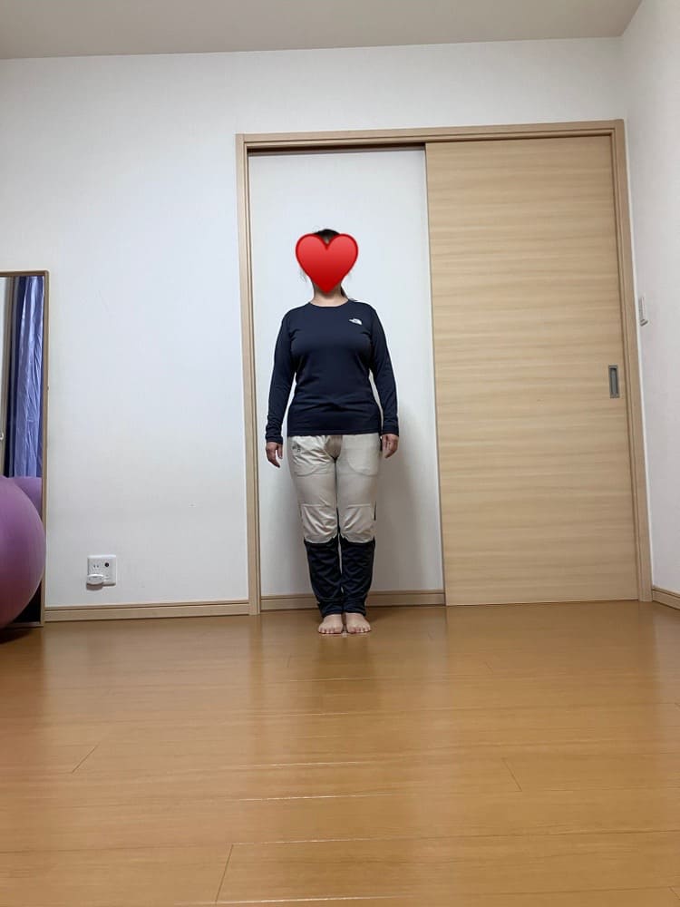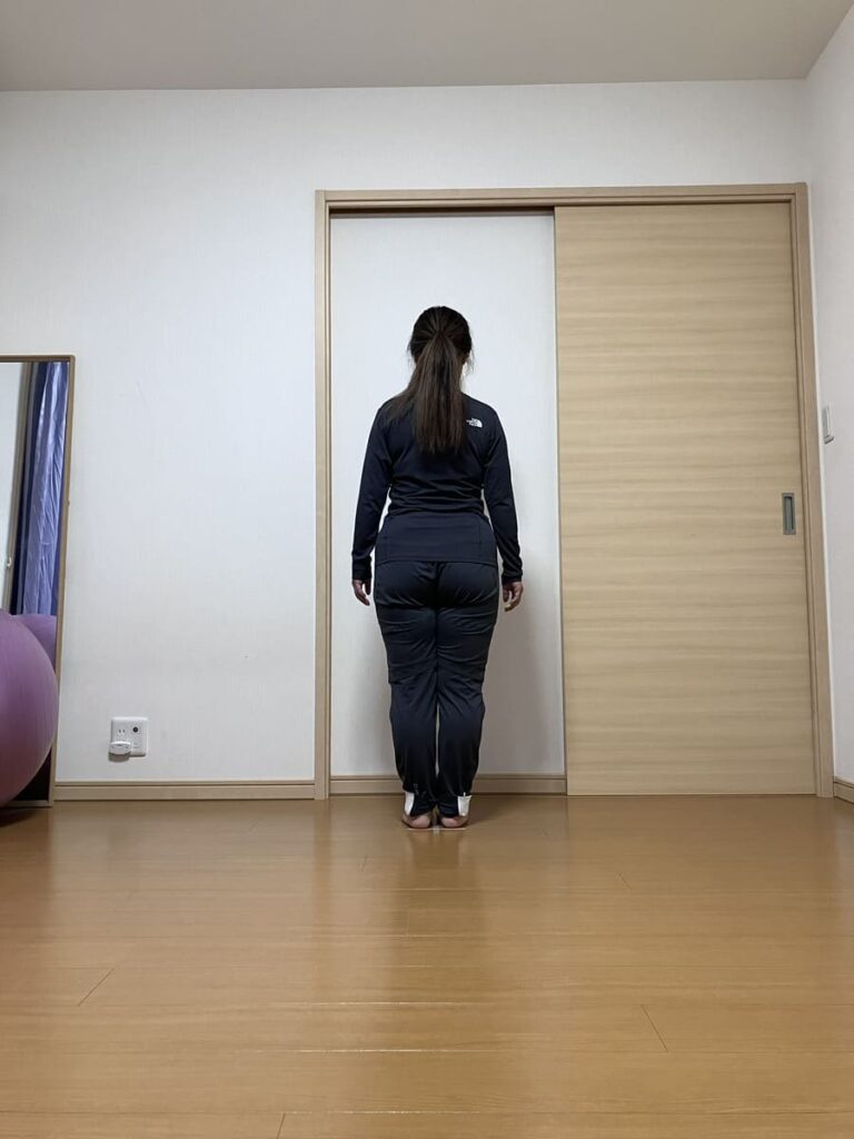 足の圧力荷重を踵に左右均等に乗る感覚を認知させること
