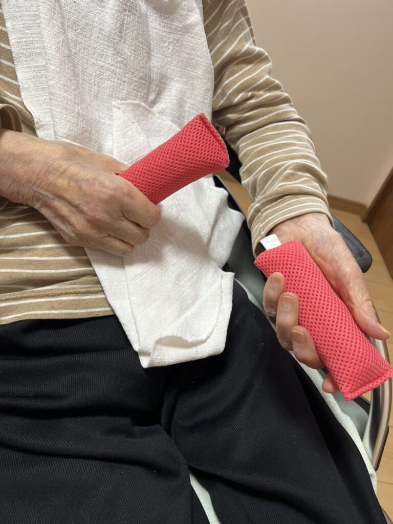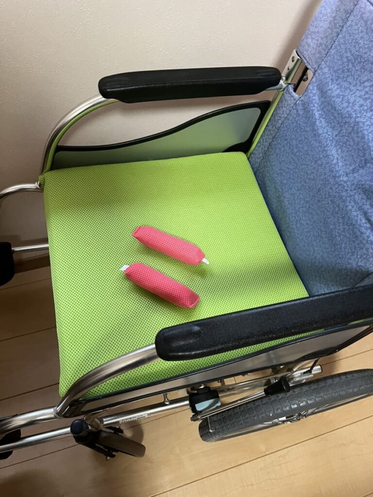 実はどのように使えばいいのかよくわかっていないまま、購入し、先日、はじめて実際に母の車椅子の下にミラクル・クッションを敷き、グリップも両手に渡してみました。