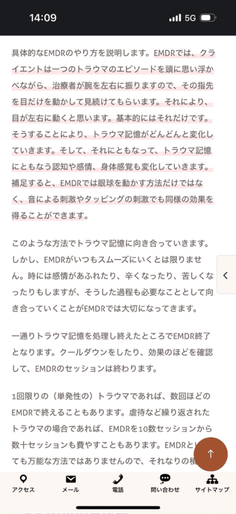 大事なのはEMDR中は常に痛みのでる動作だったり痛みのある箇所を想像してもらいながら行う事です。
