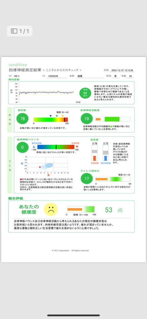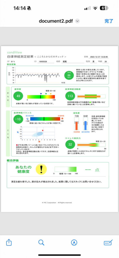 色々条件下によって差はあると思いますが、今回の検査でわかりやすい形で自律神経の反応が変わったのがこのグラフで表されています。