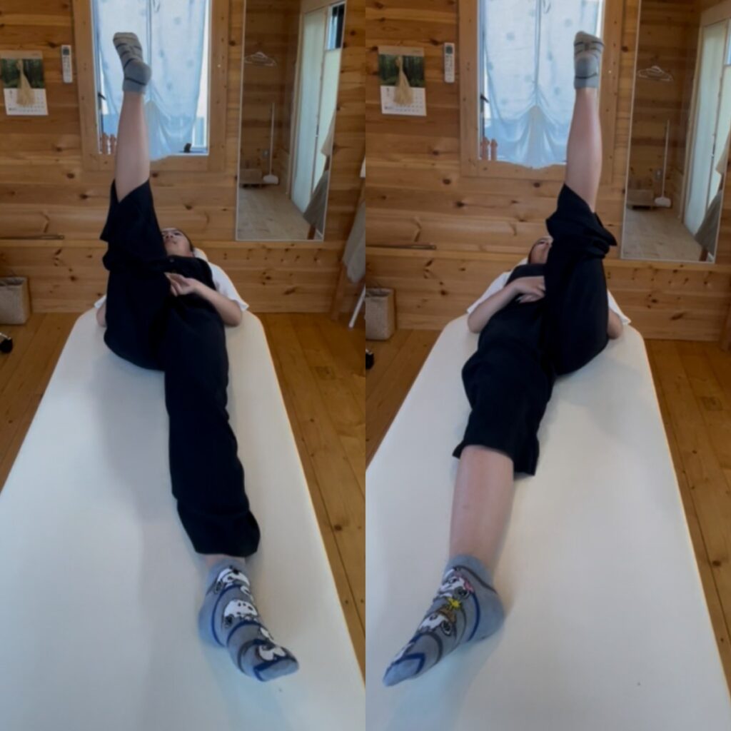 仰向け時に、左右の外旋の差が分かりやすいなぁと思いました!