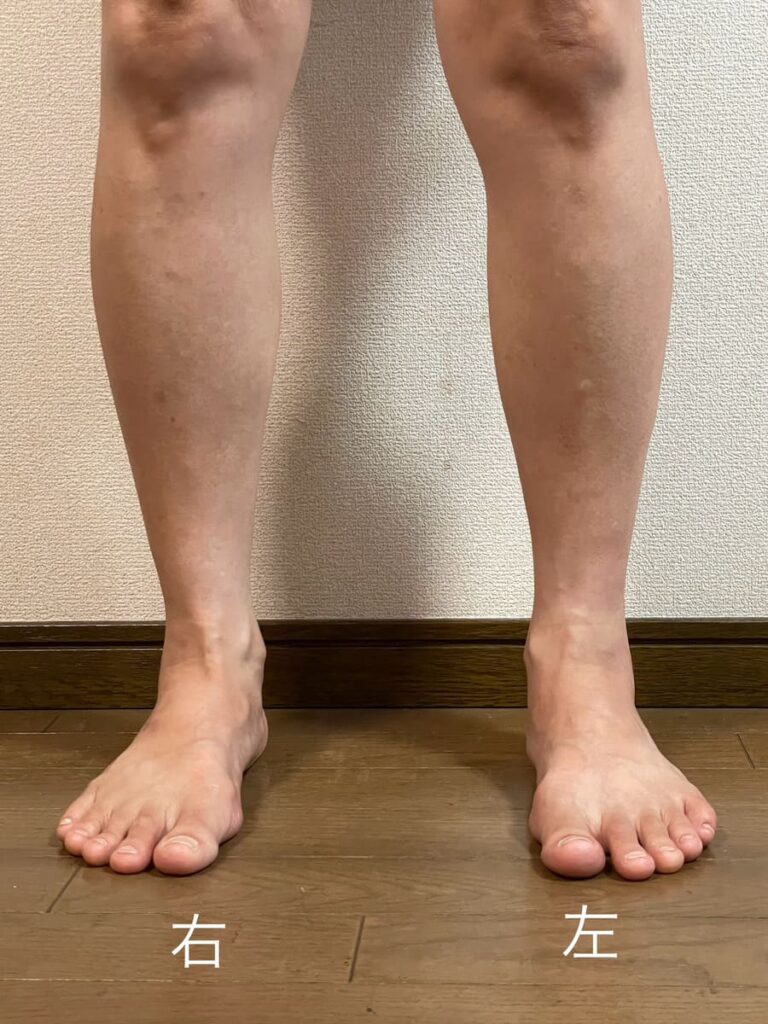 長年、左脚をかばうような生活をしていたので元々のアライメントの悪さに加え、右軸中心での動きが擦り込まれていた可能性があります。右軸と左軸では柱の太さが全く違う感覚(右はガッツリ太く強く、左は細くて弱い)