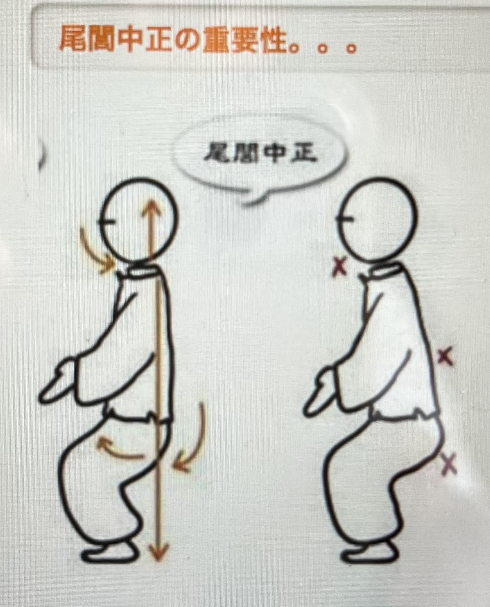 その後、亮司先生が「骨盤は前傾でも後傾でもなく立たせて行う」と確か仰られたと記憶します。